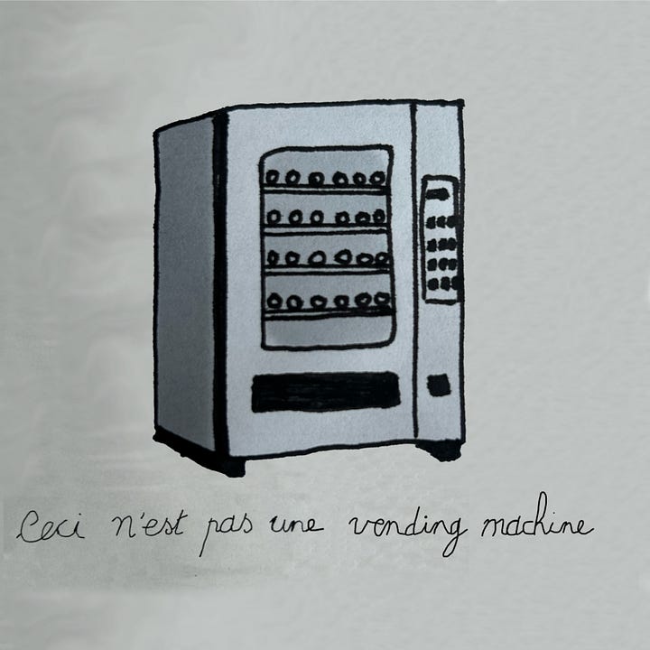 En Belgique, nous sommes connus pour être le pays du surréalisme. Et je n’ai pas pu m’empêcher de penser à la célèbre œuvre La trahison des images pour illustrer cet article consacré au concept Carrefour Buy Bye. Pourquoi ? Parce qu’il ne s’agit pas simplement d’un distributeur automatique, mais bien d’un micro-store. Et même le qualifier de micro-store est en réalité un peu réducteur. À l’image de la célèbre peinture de René Magritte*, le micro-store Buy Bye pousse à réfléchir au-delà de l’idée d’un simple magasin autonome : il s’inscrit dans une véritable stratégie d’expansion. Dans cet article, je vous décortique le concept et partage mon analyse.