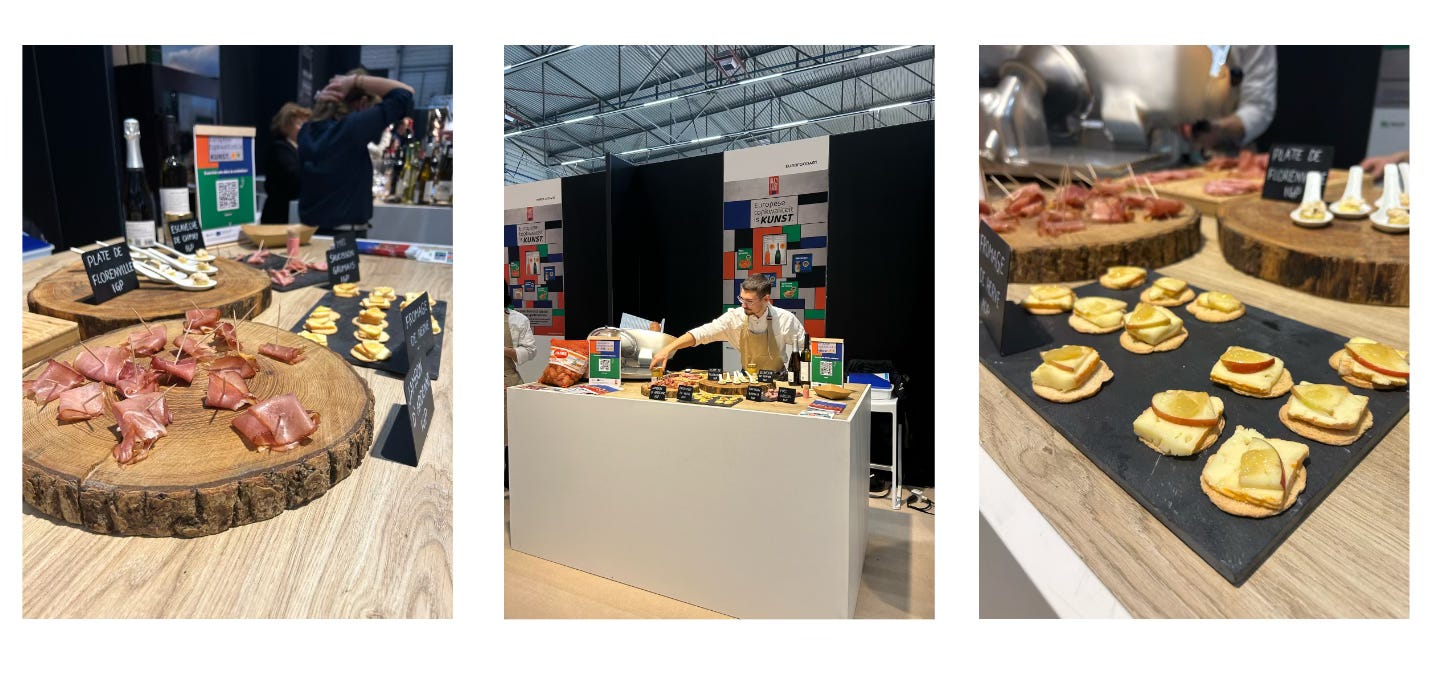 Comme je vous l’avais annoncé il y a quelque temps, la campagne Eurofoodart et les produits IGP et AOP étaient bel et bien présents et même très bien représentés sur le salon Horeca Expo. Bien entendu, je me suis rendu sur place pour y jeter un œil. Je n’ai évidemment pas résisté à la tentation et j’ai goûté un tas de choses (sans abuser) tout en apprenant quelques informations et associations insolites. Une visite toujours très inspirante.