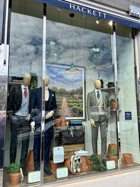 Deuxième surprise : Hackett London, qui nous emmène… au jardin. Frais, amusant, cohérent — et pourtant décalé. Serait-ce l’humour britannique ?